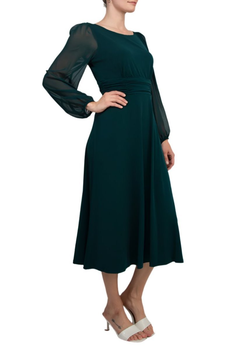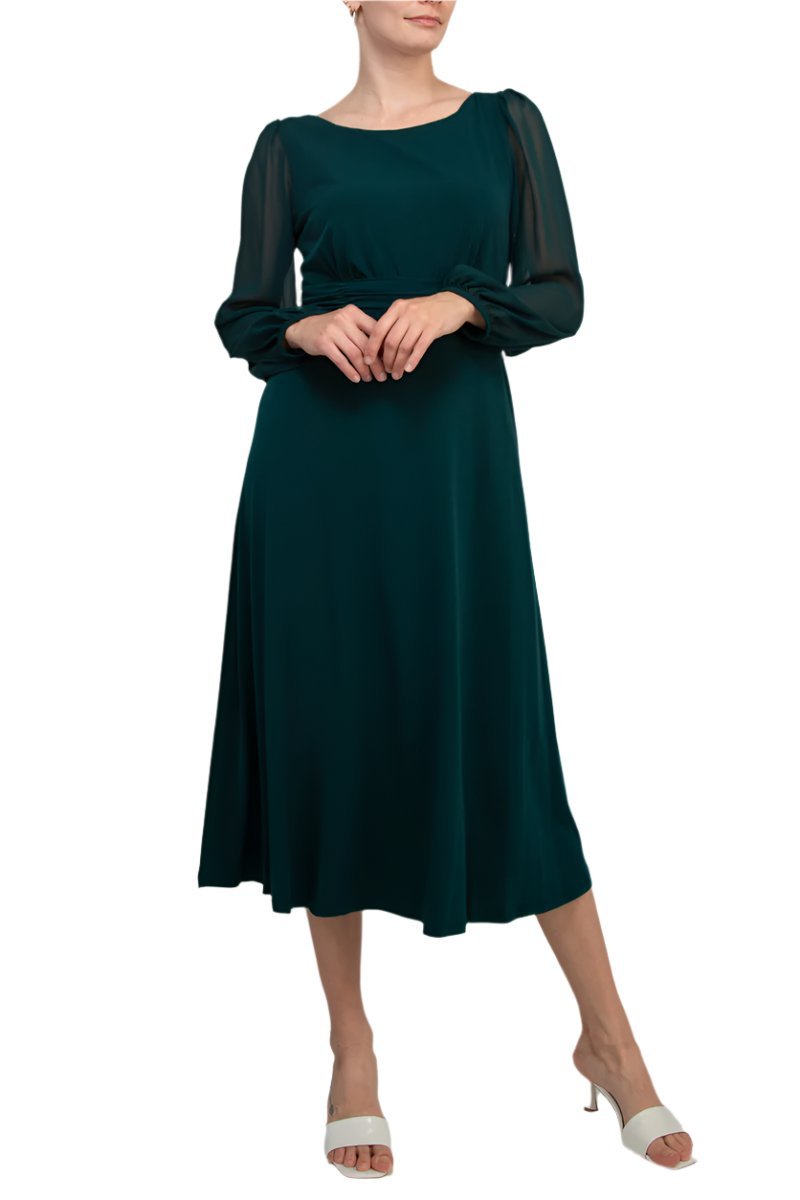 Connected Apparel Chiffon Long Sleeve Midi Dress
