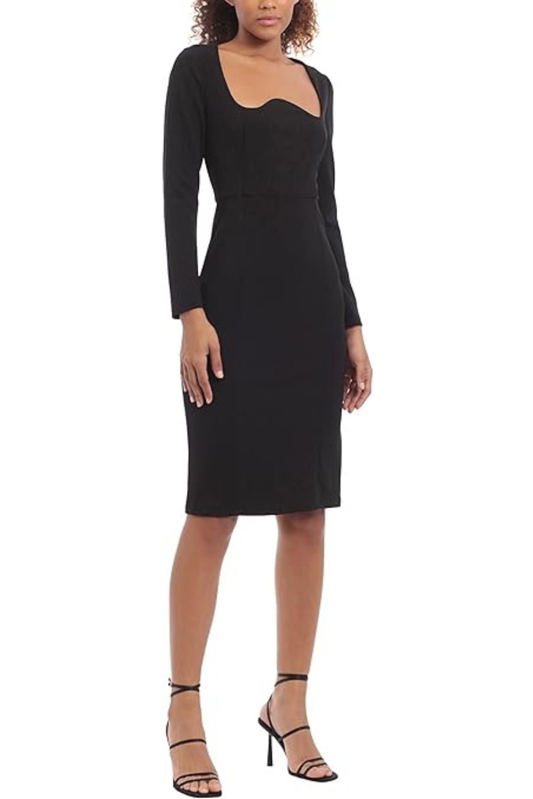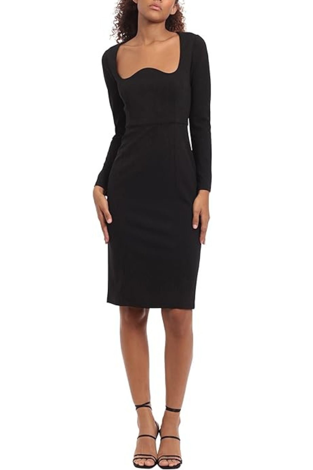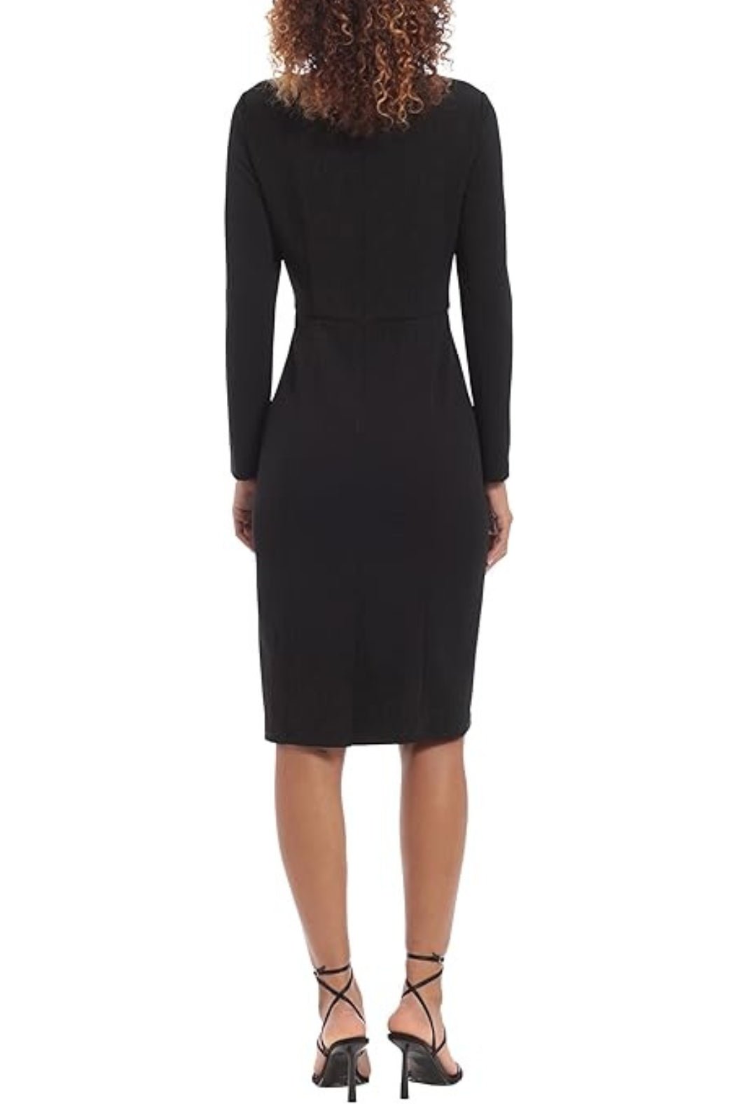 Elevate your style in the luxurious Donna Morgan Long Sleeve Midi Scuba Crepe Sheath Dress. Crafted from high-quality scuba crepe. this sophisticated dress features long sleeves and a midi length for a timeless look. Perfect for any occasion. this dress will make you stand out in the crowd with its elegant and exclusive design.