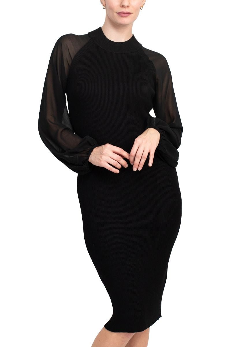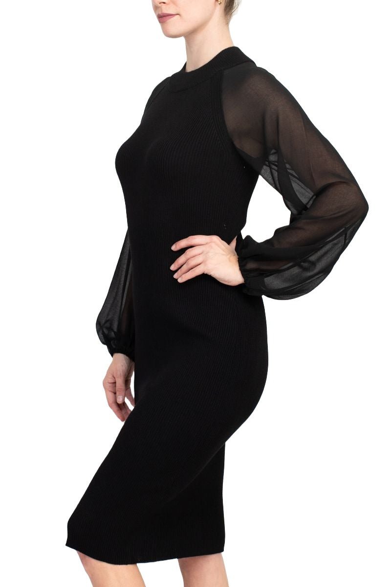 London Times Crew Neck Chiffon Long Sleeves Bodycon Knit DressLondon Times Crew Neck Chiffon Long Sleeves Bodycon Knit Dress