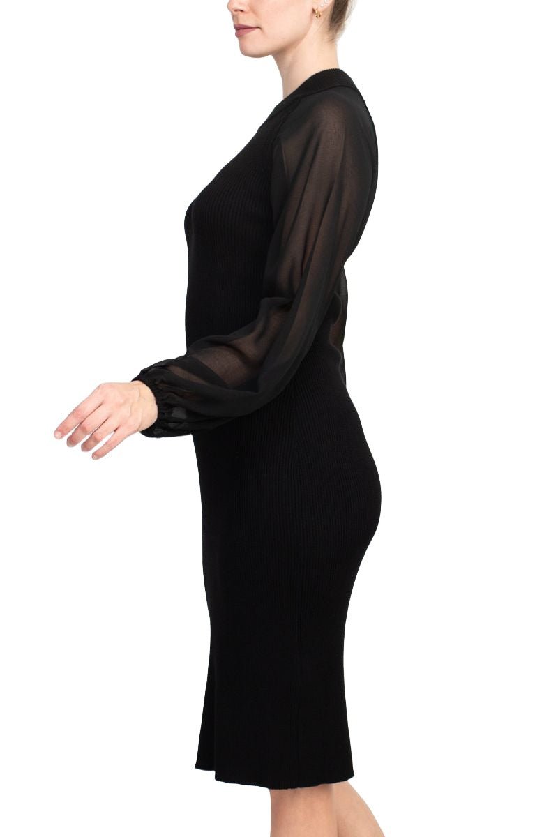 London Times Crew Neck Chiffon Long Sleeves Bodycon Knit Dress