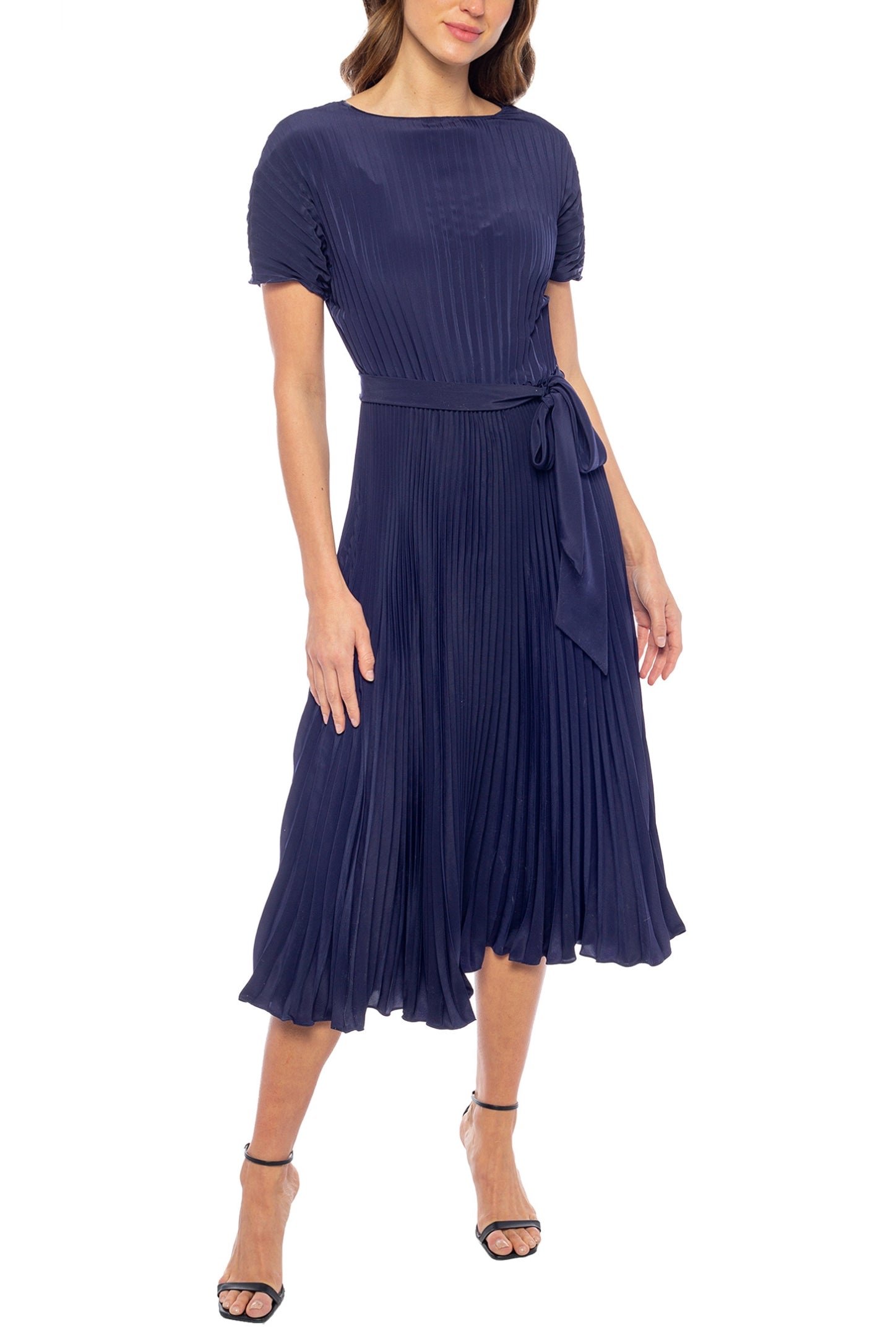 Why Choose the Marina Crew Neck Short Sleeve Fit & Flare Pleated Midi Dress?